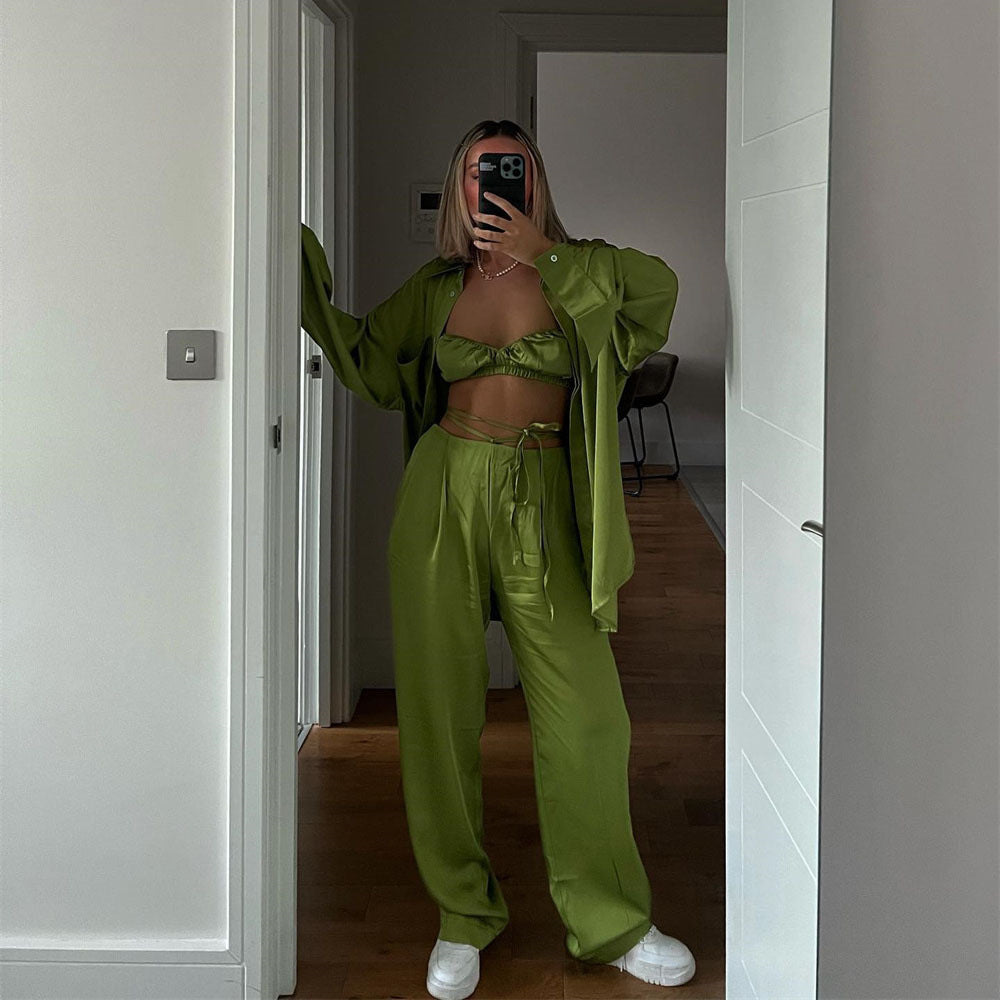 Women’s Luxe Three-Piece Set – Relaxed Shirt, Tailored Vest & Straight Pants